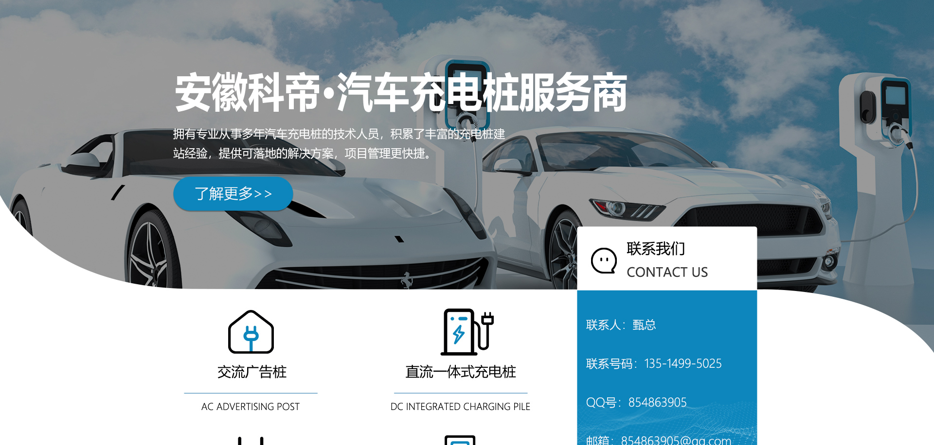 關(guān)于我們安徽科帝新能源科技有限公司坐落于安徽省會-合肥,是一家研發(fā)、生產(chǎn)智能充電樁設(shè)備,汽車充電站后臺監(jiān)控管理系統(tǒng)和生產(chǎn)高壓開關(guān)設(shè)備的企業(yè).由專門的研發(fā)團隊、管理團隊按照現(xiàn)代化企業(yè)制度規(guī)范設(shè)立的有限責任公司。致力于為能源智能、安全的應用和節(jié)能減排提供整體的技術(shù)與產(chǎn)品解決方案。科帝集研發(fā)、設(shè)計、生產(chǎn)、銷售以及服務于一體,在電動汽車充電方案,充電設(shè)施建設(shè)和城市配電方面擁有廣泛的技術(shù)研究及經(jīng)驗積累,為客戶提供安全、智能的充電設(shè)備及充電運營站建設(shè)一體化解決方案。并堅持以人為本、質(zhì)量為先、顧客至上、不斷創(chuàng)新”的企業(yè)理念,為能源行業(yè)的發(fā)展、節(jié)能減排做出重大的貢獻。公司擁有豐富的產(chǎn)品種類,目前科帝已研發(fā)生產(chǎn)了三十多種產(chǎn)品,充電設(shè)備有直流一體式充電樁、直流分體式充電樁、直流廣告樁、交流廣告樁、廣告一體樁、壁掛交直流樁;等多種充電設(shè)備;每一款產(chǎn)品都是精心打造,力求為客戶提供優(yōu)越的用戶體驗。展望未來科帝將通過持續(xù)的自...